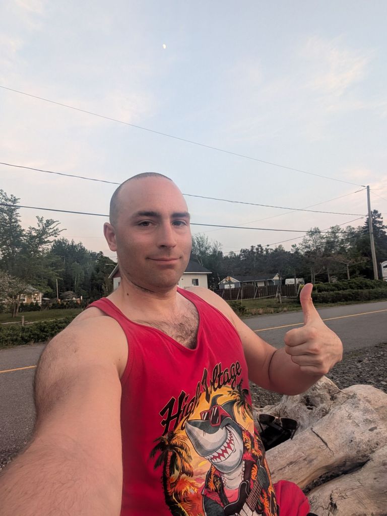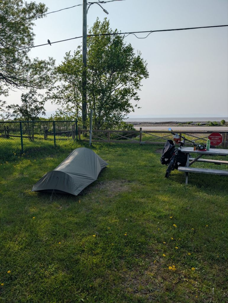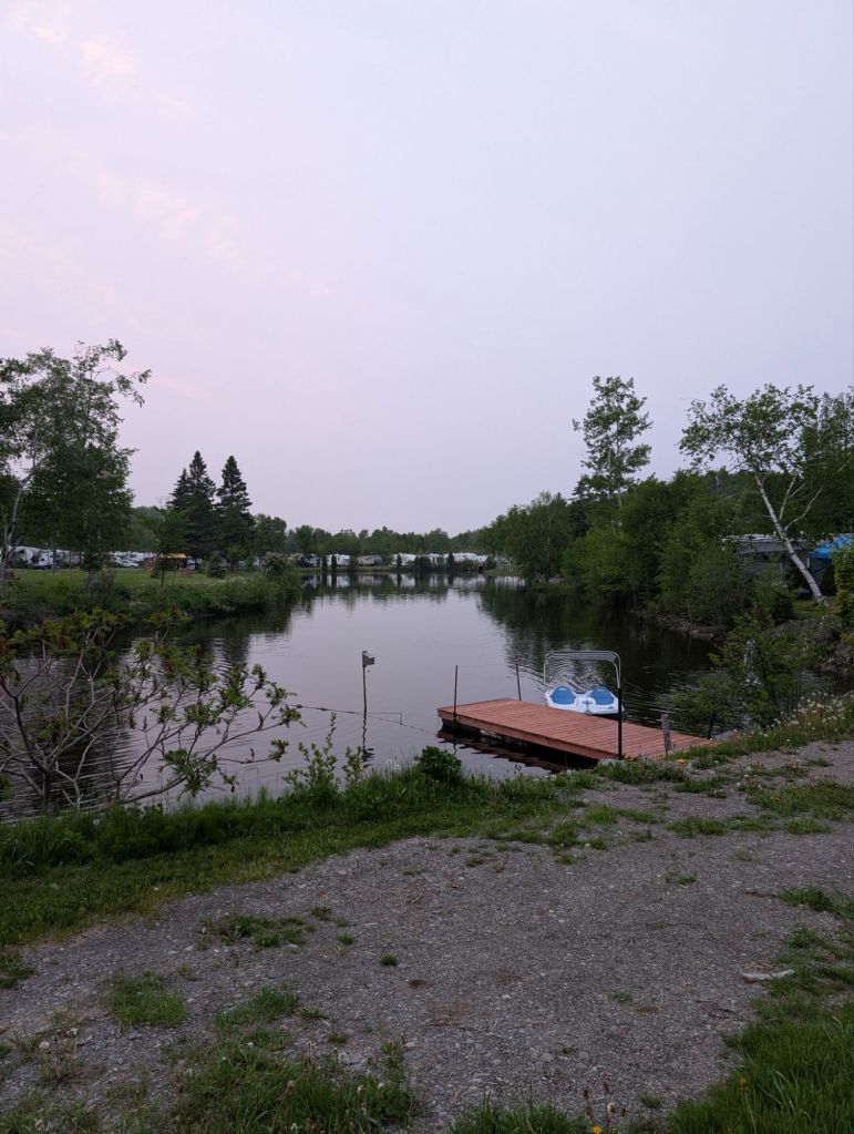 Brûlée de cette journée humide et de mon passage frénétique en ville, je décide de m’arrêter à un sympathique camping en chemin du Nouveau-Brunswick.