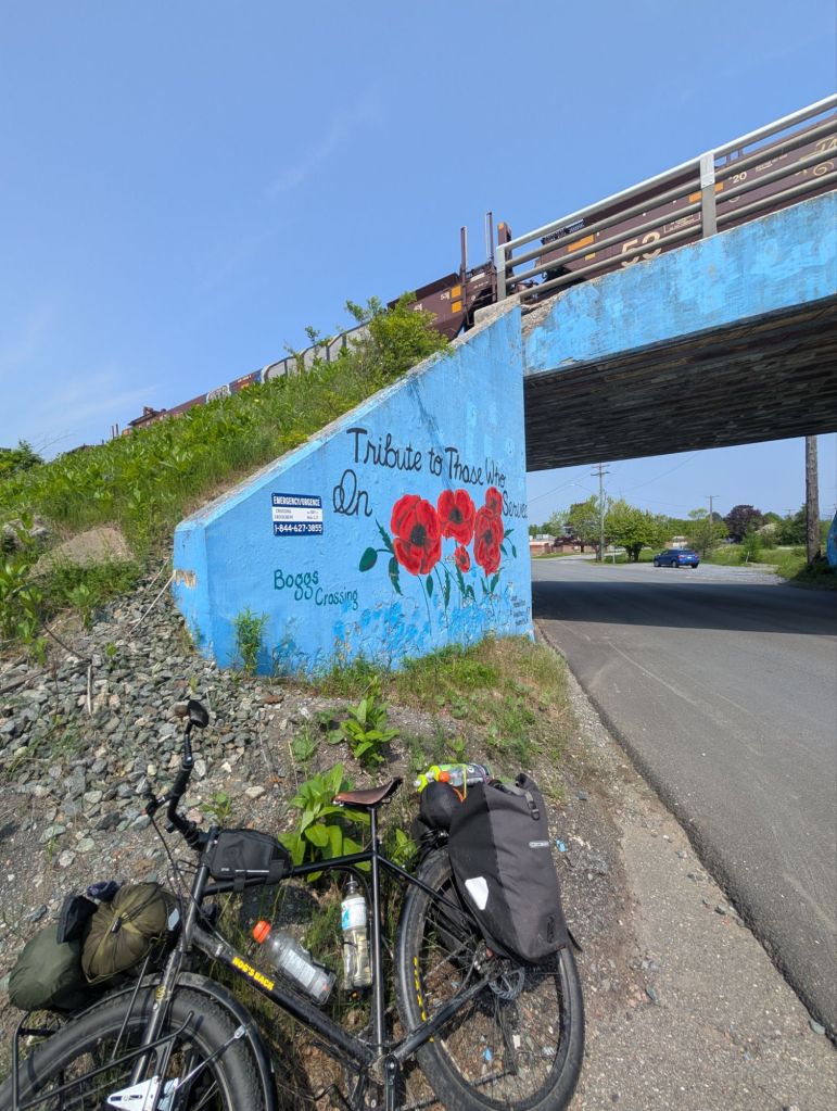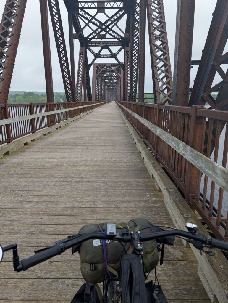 Je me dirige vers Oromocto, qui est l’autre côté du fleuve. Heureusement, ce pont qui était au par avant conçu pour les trains est complètement et exclusivement accessible pour les piétons et cyclistes.