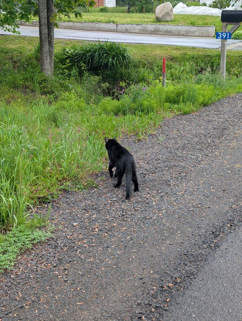 Je reste pas trop longtemps en ville, car il commence à mouiller. Ça prend pas long qu’il se met à tomber des clous. C’est quand même chanceux d’avoir éviter la pluie jusqu’à maintenant.