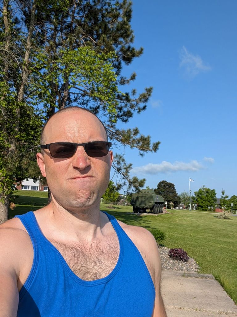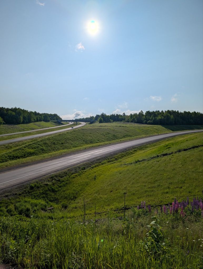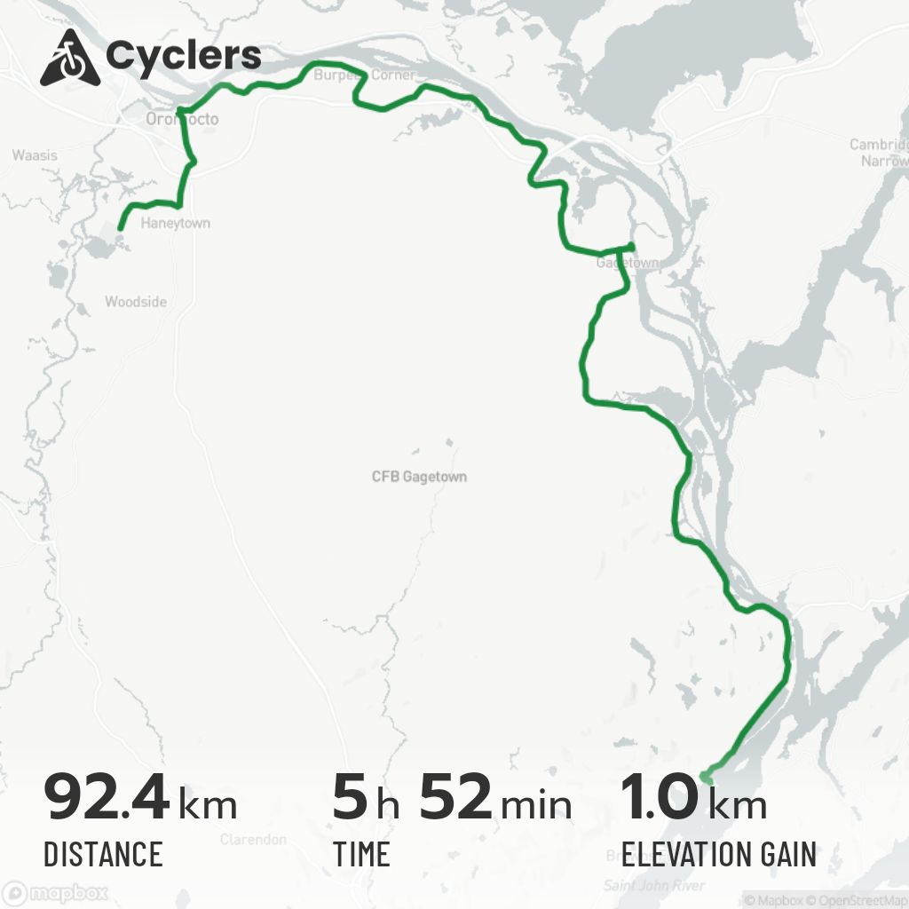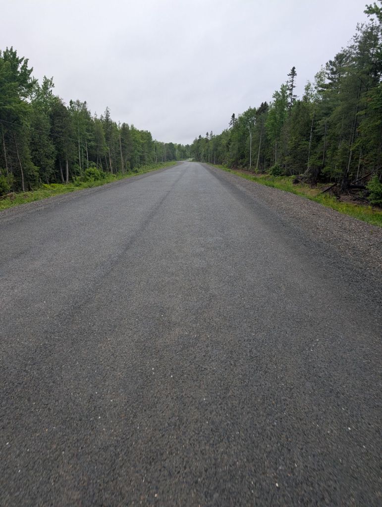J’essaie d’emprunter la trail qui se rend à Oromocto mais ça devient vite dégueulasse avec des trous d’eau partout. Mon gps essaye même de me faire passer par un coin plein de boue, remplis de grosses roches, et un marécage qui est habitué par des milliers de maringouins. Vive la technologie. Finalement j’affronte le trafic sur la route 102, mieux ça que le pitoyable marécage