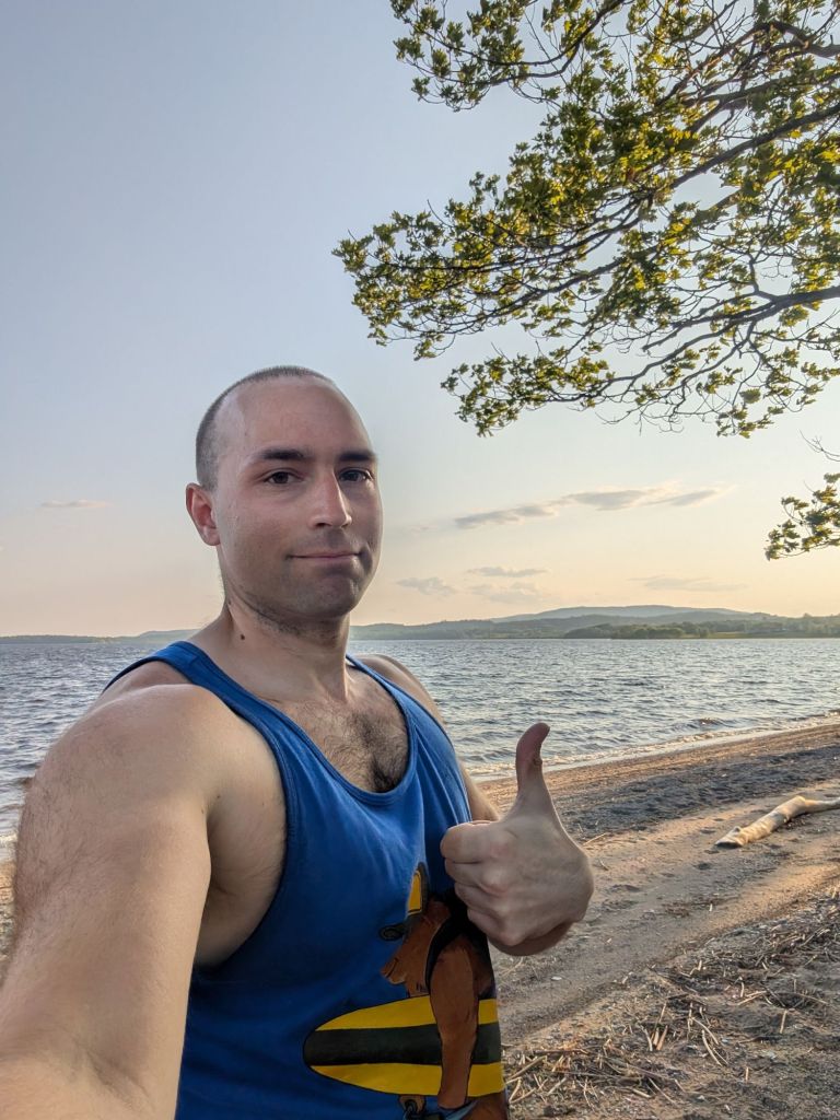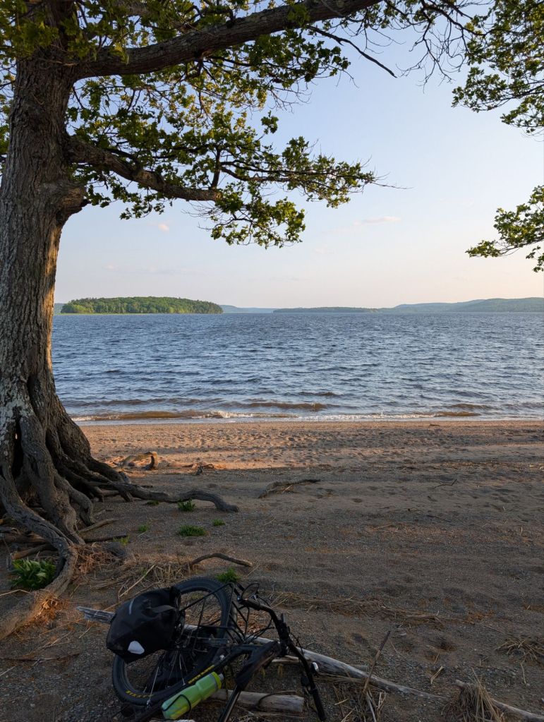 Ce camping est gigantesque! Il a même une grande plage avec une super vue. La brise de la plage fait vraiment du bien après m’avoir fait éclater par le soleil toute la journée…