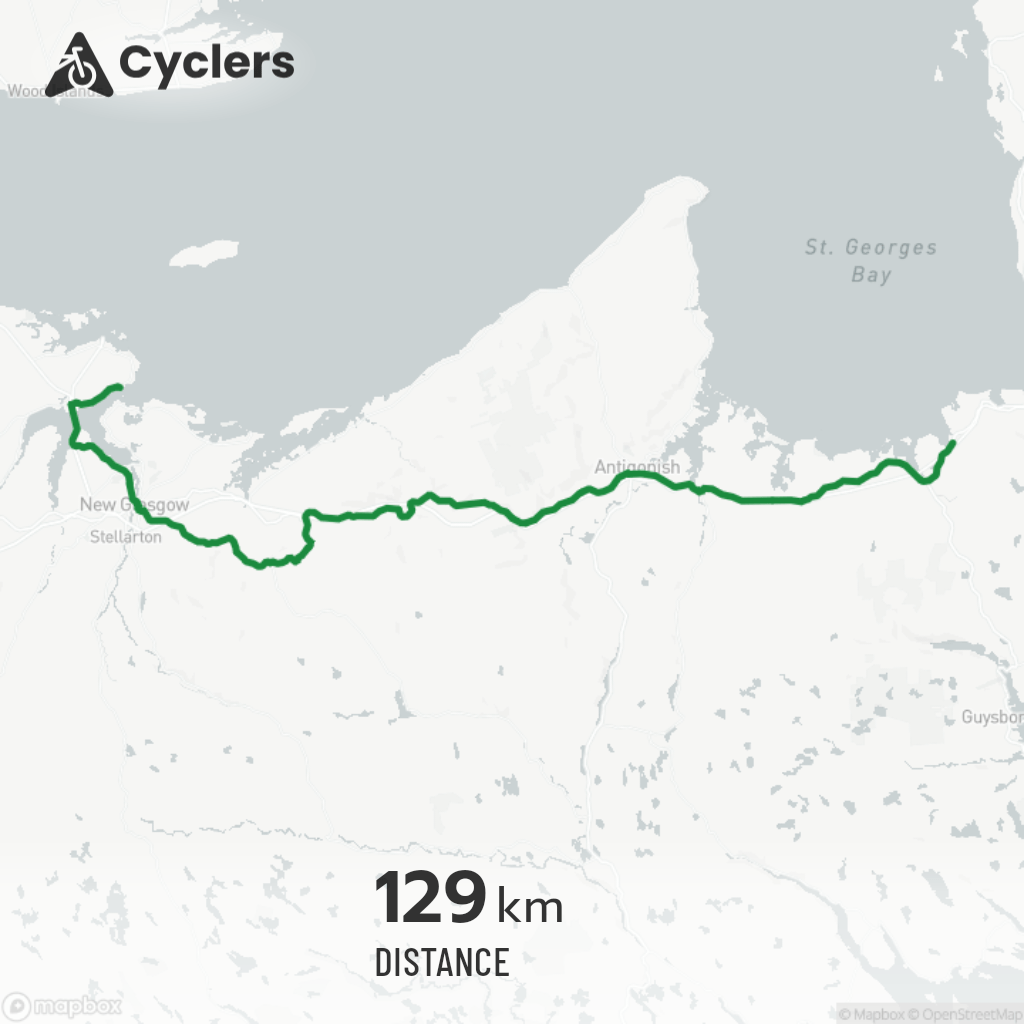 New Glasgow et Pictou sont séparés par une sorte de Baie en X provenant du Golfe du Saint-Laurent. Le chemin le plus rapide s’agit de la chaussée de Pictou, qui fait partie bien-sûr de l’autoroute. L’accotement est plus large que celui de Canso, mais les voitures roulent beaucoup plus rapidement!