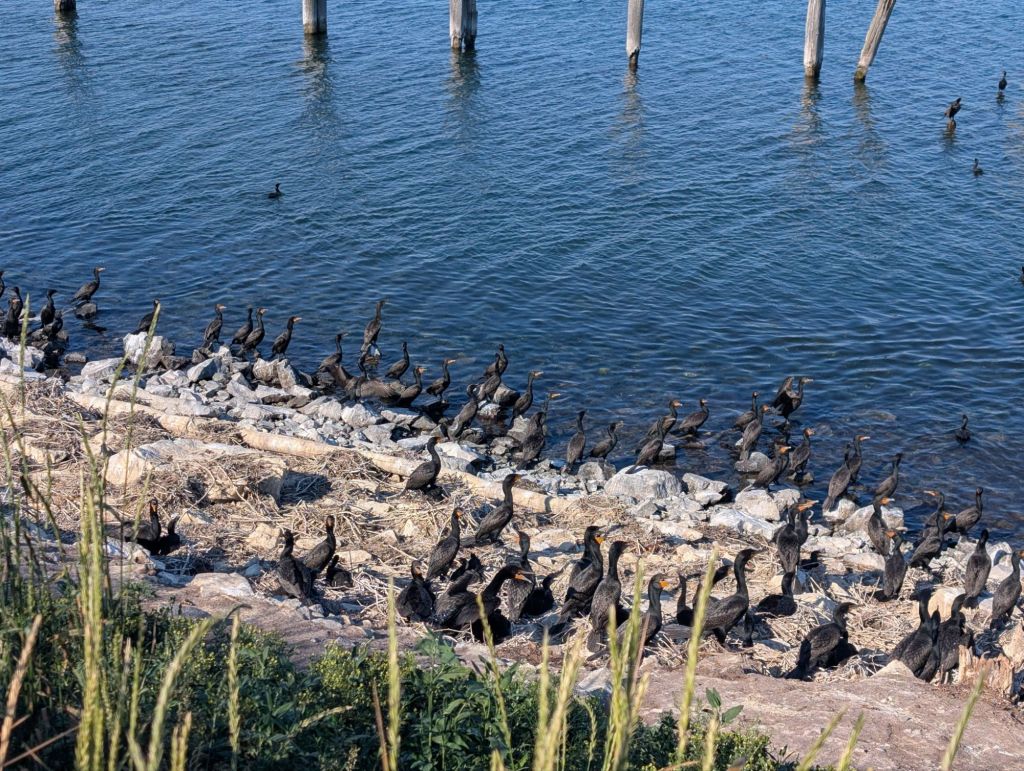 Pendant que je traverse, j’aperçois un gros party d’oiseaux de mer sur le côté! J’ai aucune idée quel espèce d’oiseau s’agit t’il, mais çà sent le diable.