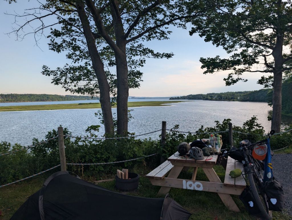 Je compte trouver une shop de bicycle une fois rendu à Î.-P.-É. (Île du Prince Édouard, ou PEI en anflais) et les remplacer, dans le coin de Charlottetown. Pour l’instant je tente de me rendre dans un camping près de Pictou d’ici ce soir pour prendre le traversier demain matin.