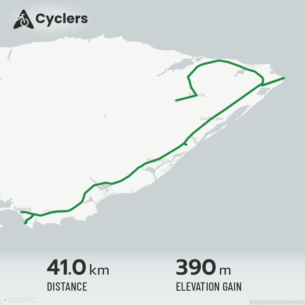 J’ai maintenant touché l’extrémité nord-ouest et l’extrémité est de IPÉ. Il reste environ 130 km pour compléter la boucle. Il reste plus qu’à retourner au traversier, que je compte prendre demain matin.