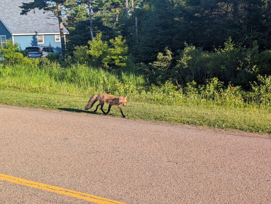 Près du phare, j’aperçois des renards! Ils se méfient de moi, mais ils ne sont pas trop oeureux