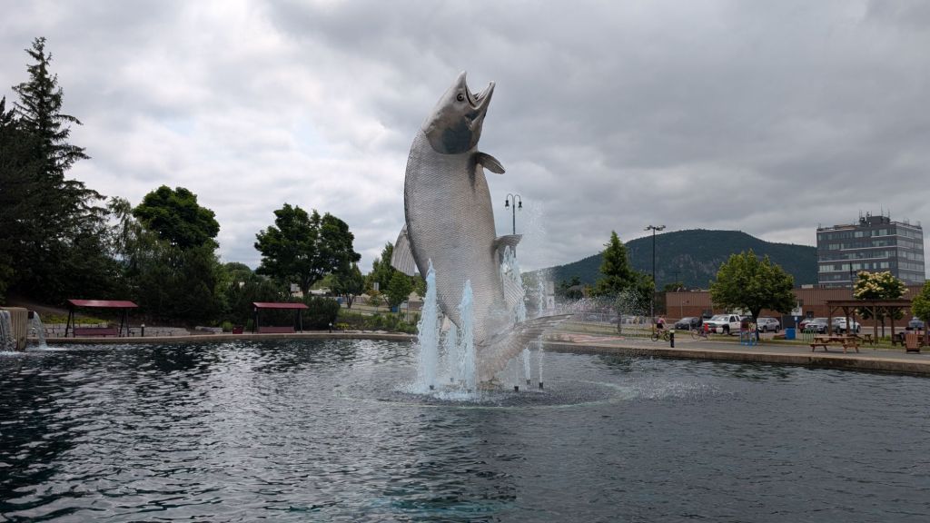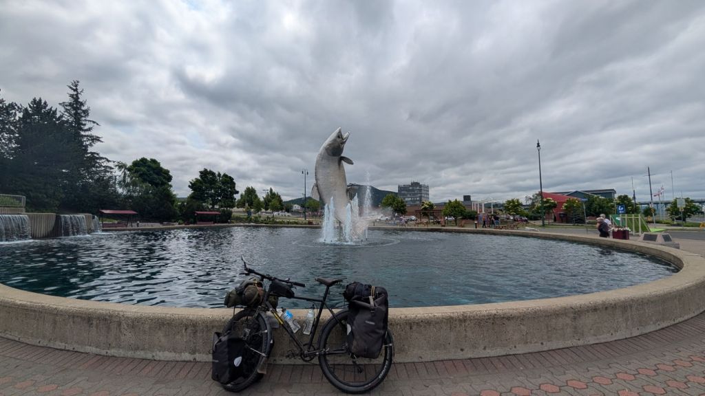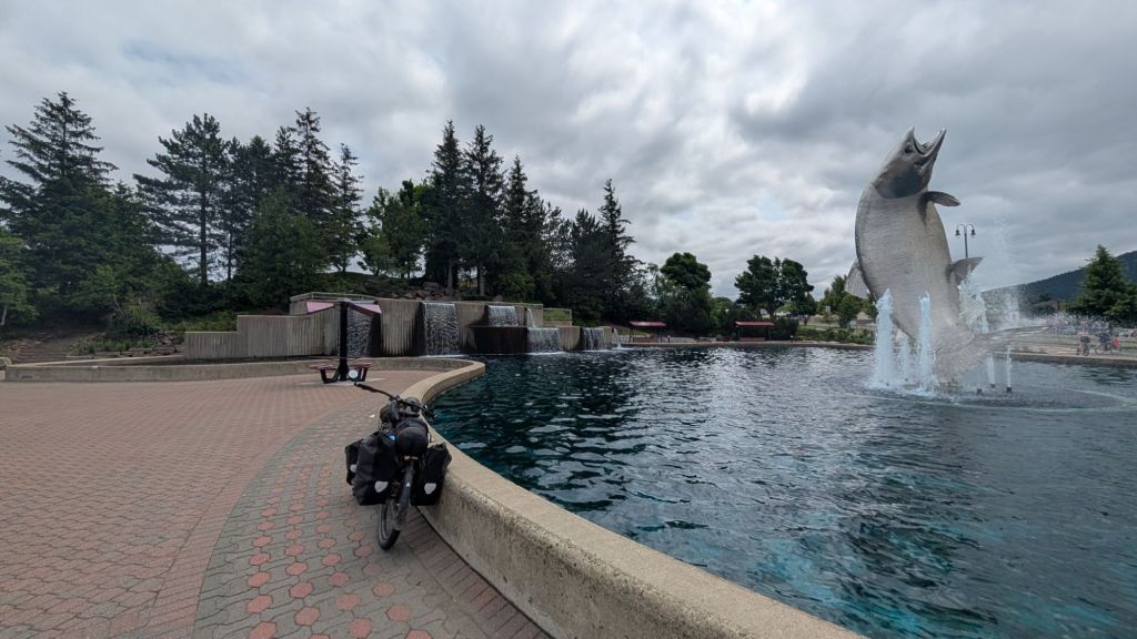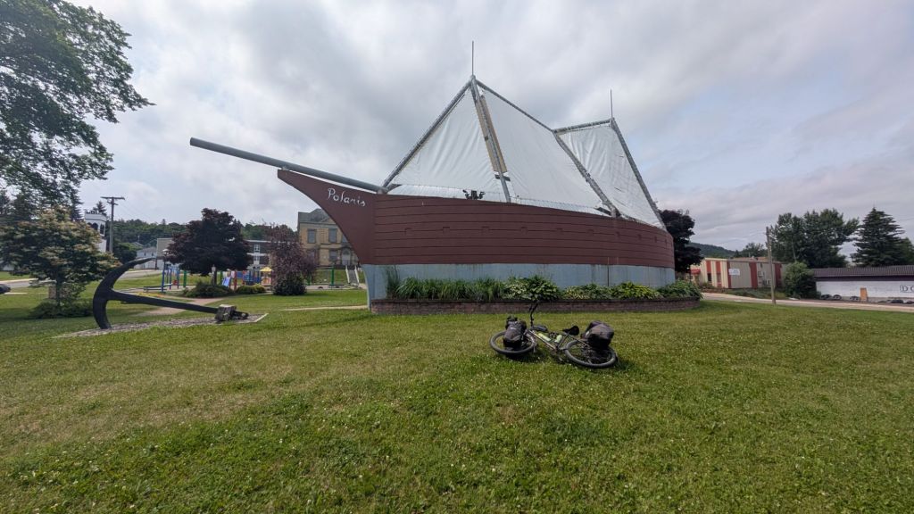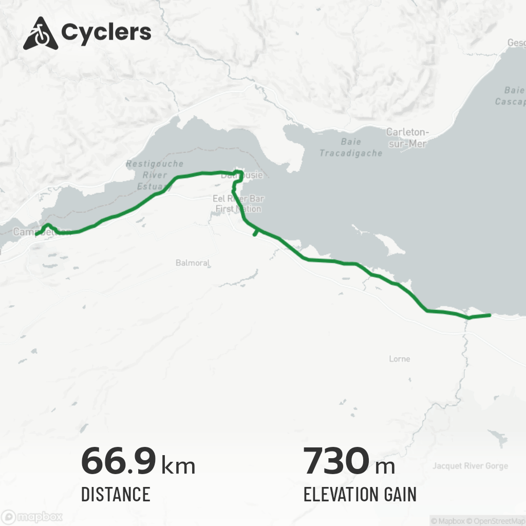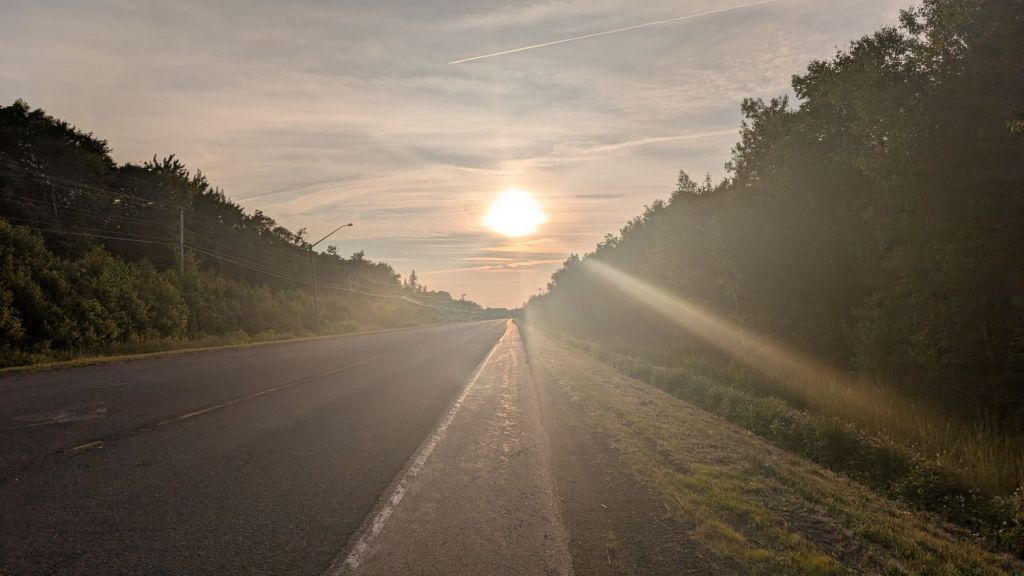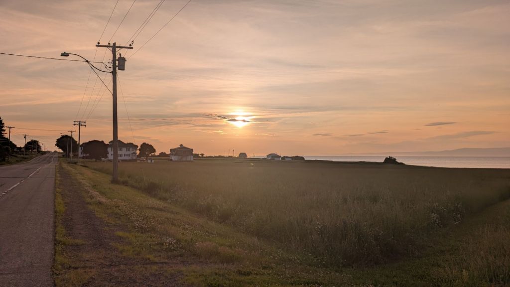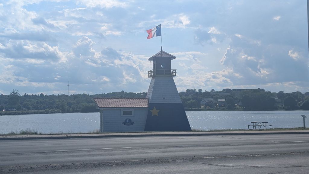 Après 100 kilomètres sur l’autoroute, la 134 nord se sépare enfin de la 8, et on se dirige vers Bathurst. Rendu là Guillaume est crevé (il fait 35c de ressenti aujourd’hui)et c’est là qu’on se sépare, car je désire profiter du reste de la journée pour me rapprocher de Campbellton le plus possible. Je suis ravi d’avoir fait sa connaissance et c’était vraiment sympathique d’avoir un camarade sur la route qui roule aussi vite que moi.